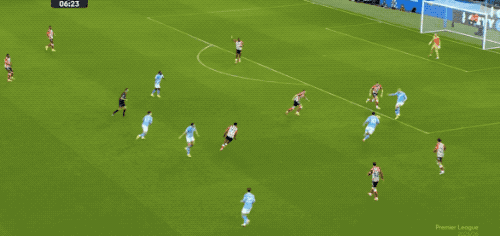 第65分钟,谢尔基再次展示娴熟的技术,曼城的新10号上演插花脚传中,福登的头球击中门柱,弹进球网。