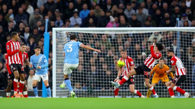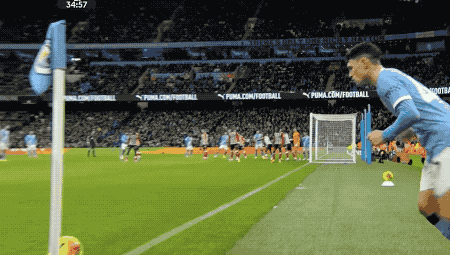 第34分钟,曼城获得角球,福登将球开出,格瓦迪奥尔高高跃起,头槌破门。